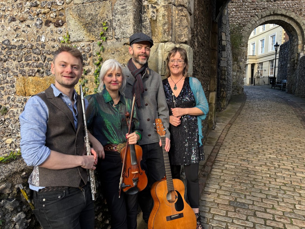 A brand new ceilidh band formed of highly experienced musicians, Ceilios turn trad tunes into high energy, inclusive floor-fillers. Led by veteran caller Gill Emmerson, and powered by Kirsten Hammond on fiddle, Dan Stewart on guitar and Simon on flute and whistles.